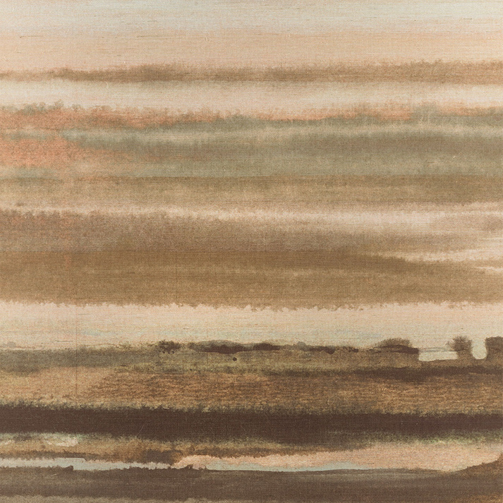 Layers of brushstrokes create a colorful ombré horizon that becomes a large, immersive mural wallcovering. The mural may be printed on grasscloth, silk, linen, paper, authentic metallic leaf, or wide-width vinyl. Our eco-friendly, sustainable grounds for printing include rapidly renewable hemps and cork. Available in a wide range of colors and customization options. Made to order with the industry’s shortest lead times.