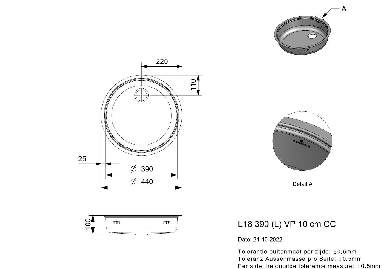 - Total dimensions (mm): 440x0x100