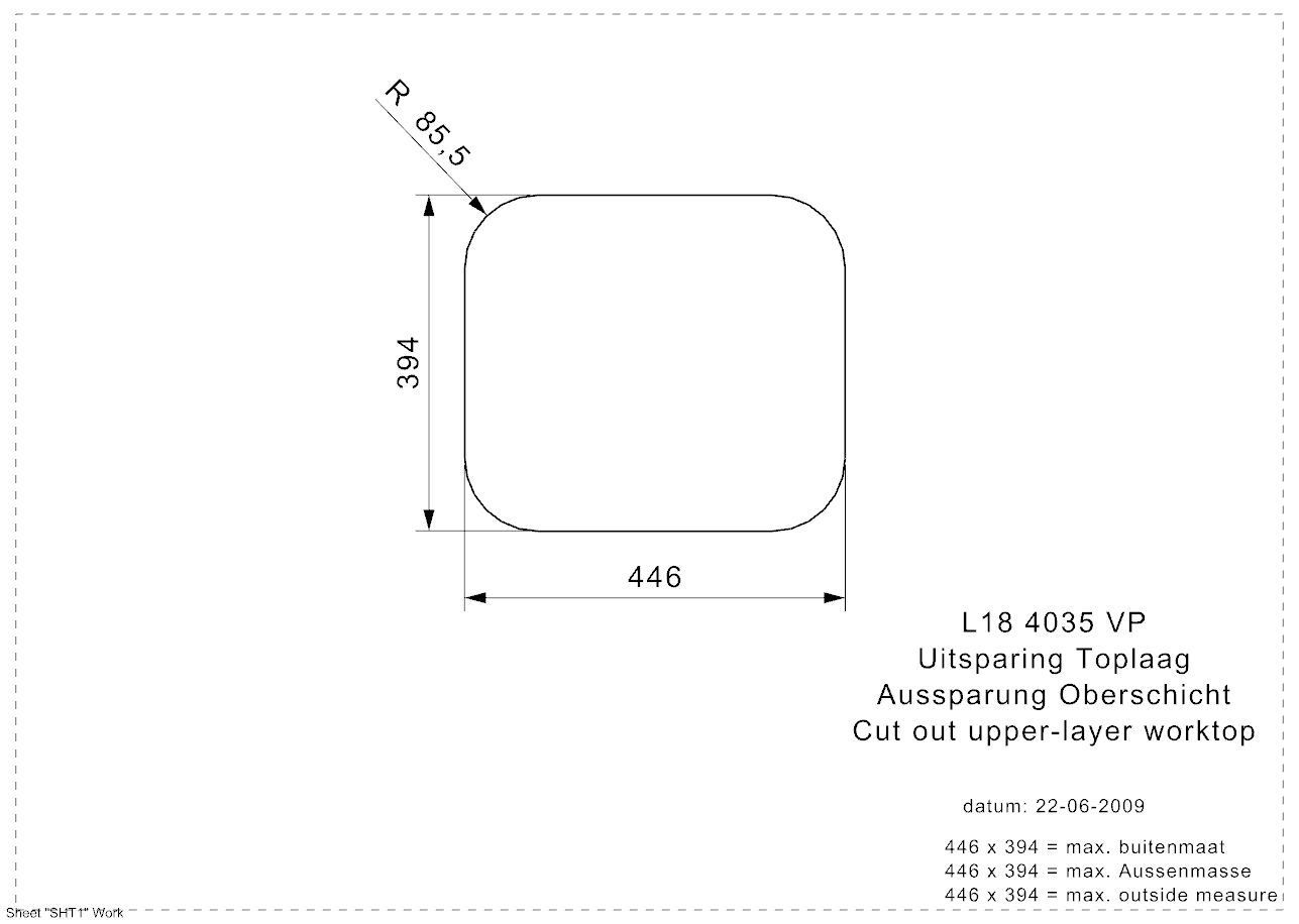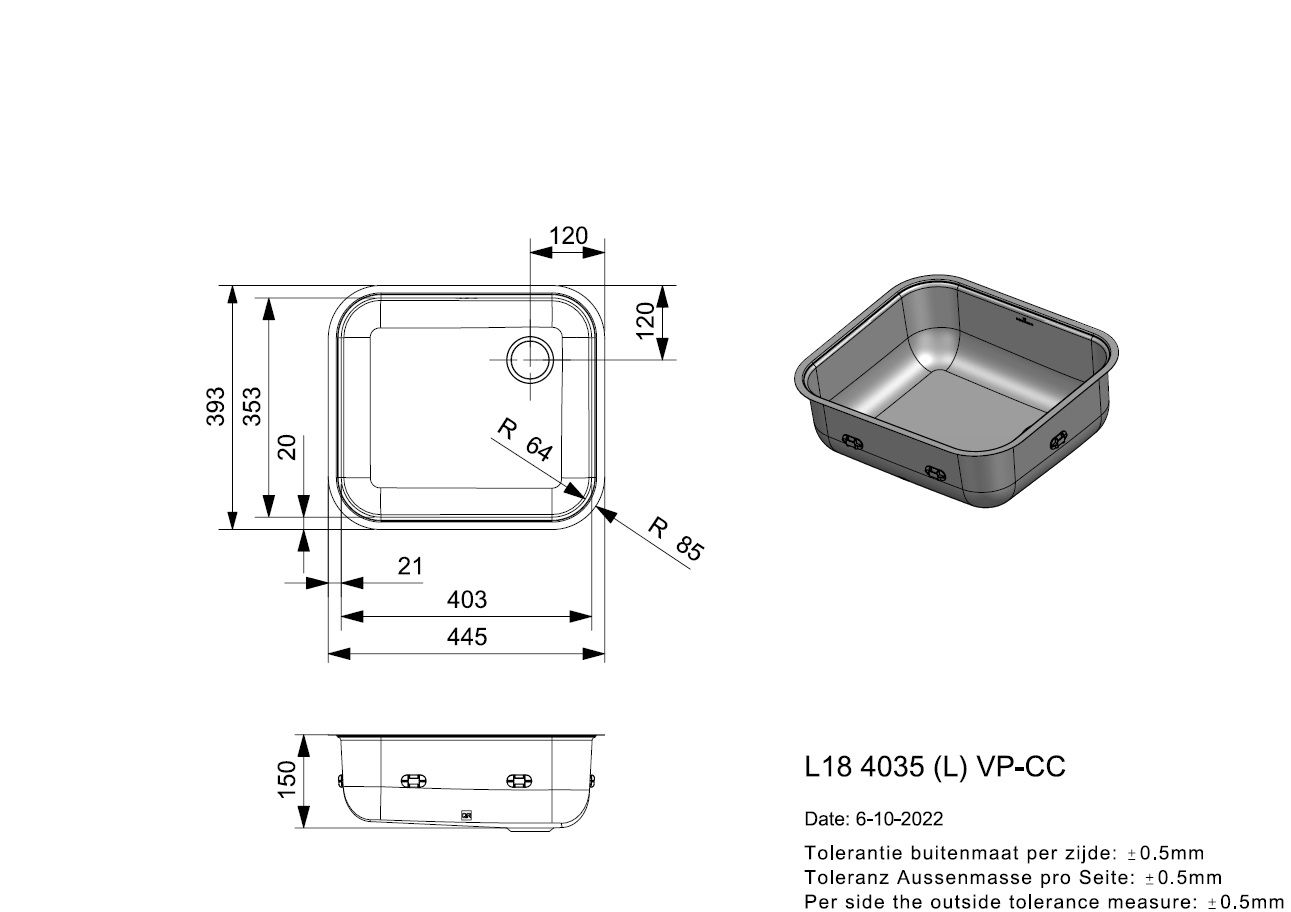 - Sink dimensions (mm): 403x353x150