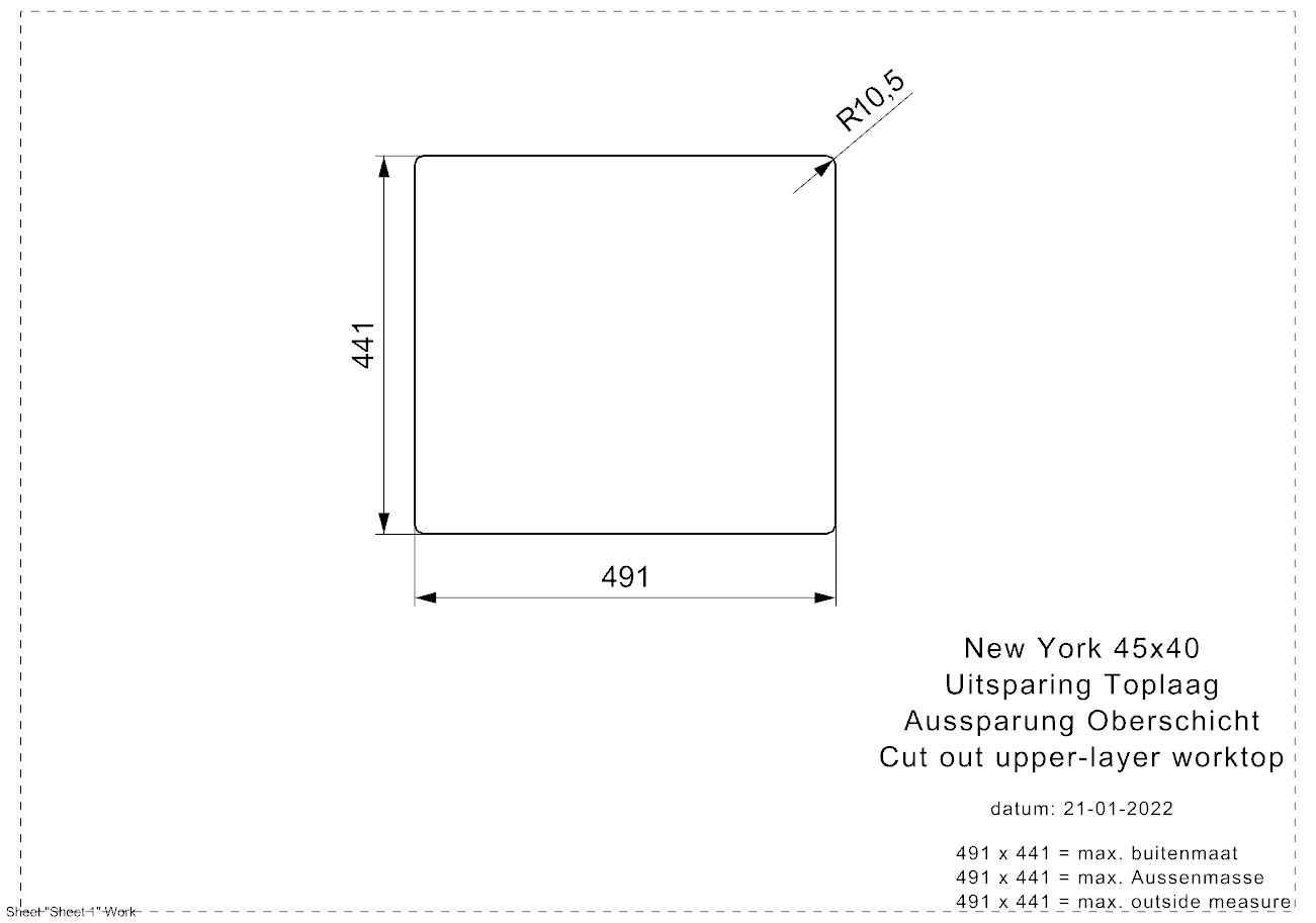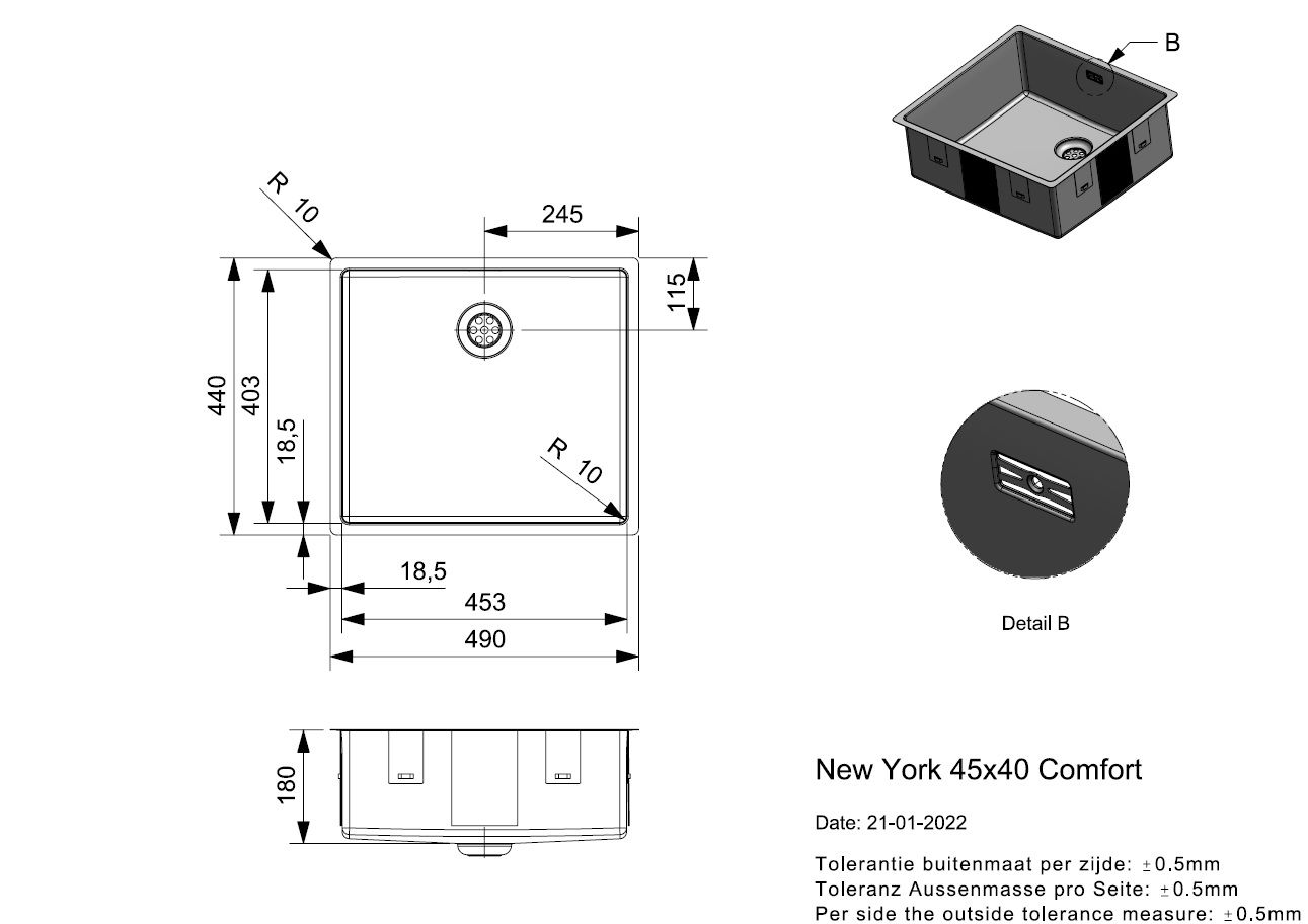 - Sink dimensions (mm): 453x403x180