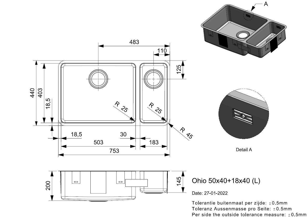 • Total dimensions (mm): 753x440x200