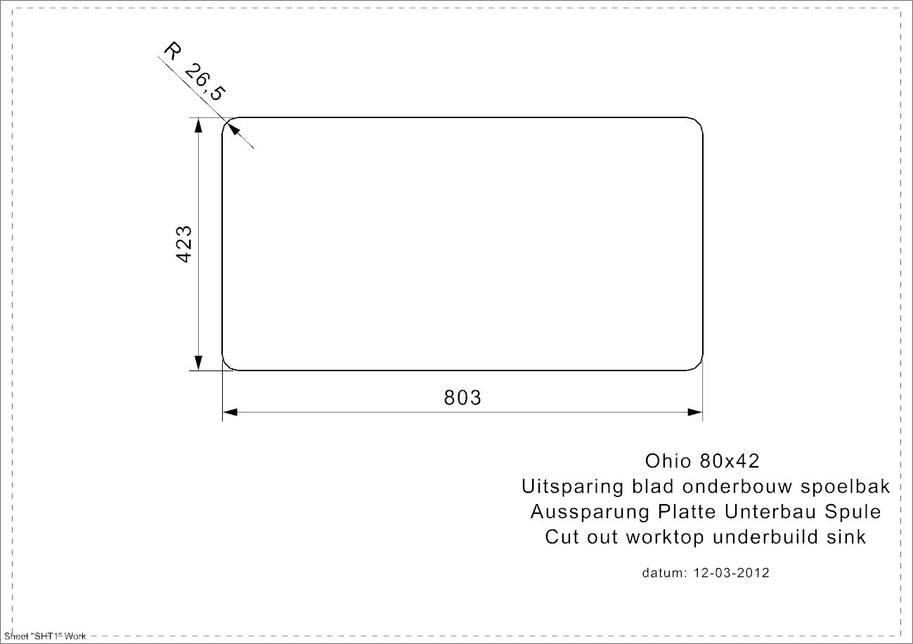 - Sink dimensions (mm): 803x423x220